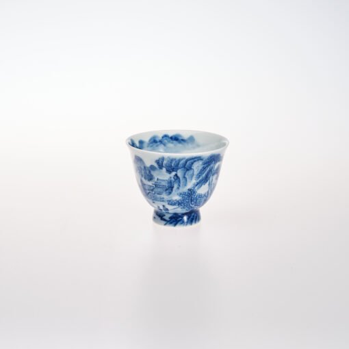 Step into a classic Chinese literati scene with this handcrafted Scholars’ Retreat Tea Cup—a vivid underglaze blue shan shui masterpiece that weaves together nature, leisure, and ancient scholarly culture.