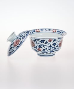 Elevate your gongfu tea ritual with this handcrafted Blue-and-Red Underglaze Gaiwan—a tribute to Qing Dynasty imperial porcelain, blending vivid symbolism and masterful artistry.