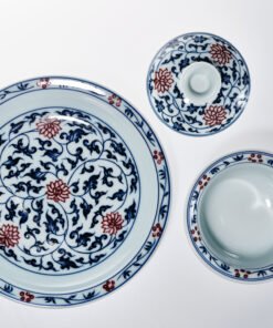 • Vine scroll (blue): Represents “endless prosperity” (a classic imperial motif), with delicate, swirling leaves that connect the bowl, lid, and saucer into a cohesive work of art.