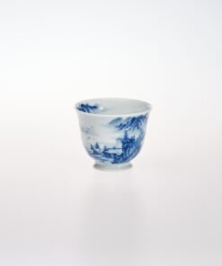 Escape to a tranquil Chinese mountain retreat with this handcrafted Pavilion in the Pines Tea Cup—a vivid underglaze blue shan shui (mountain-water) masterpiece that turns every sip into a moment of quiet contemplation.